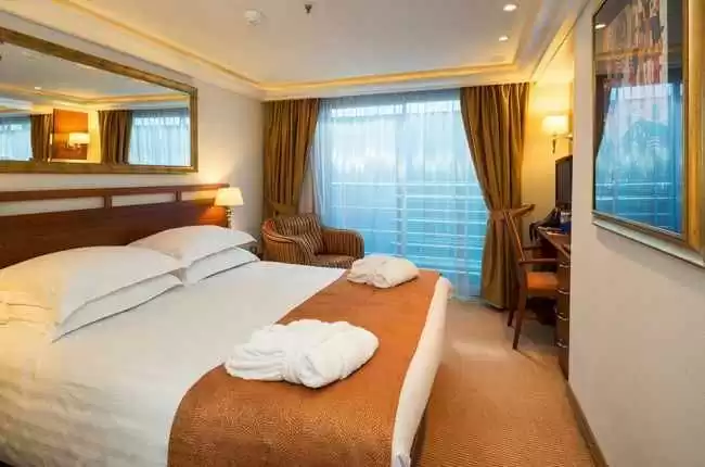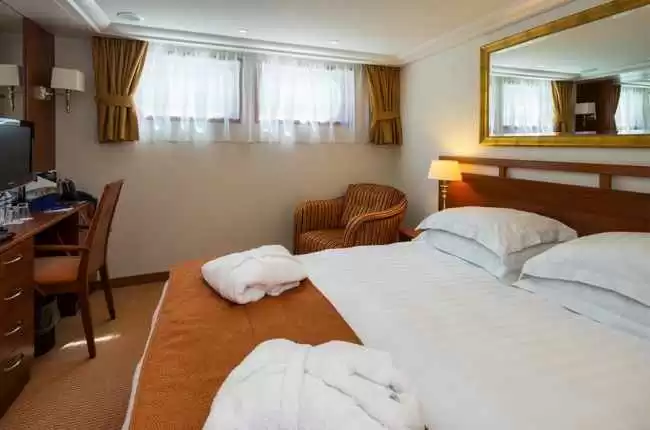 - La croisière dans la catégorie de cabine de votre choix en pension complète: Petit-déjeuner, déjeuner et dîner