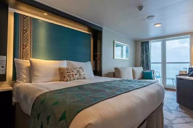 Équipements : Cabine avec balcon meublé, pourvue d'un lit Queen size confortable et d'un canapé-lit double. Dispose d’une salle de bain privée avec douche et espace coiffeuse, d’une télévision interactive, d’un coffre-fort, d’un mini-réfrigérateur et d’une bouilloire. Connexion internet Wi-Fi disponible en supplément.