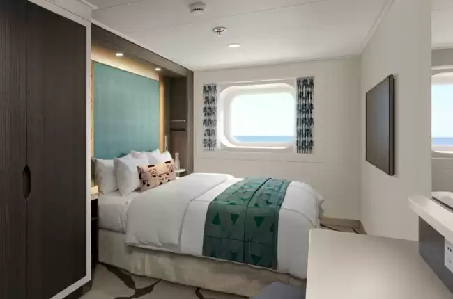Équipements : Cabine avec fenêtre offrant une vue sur la mer, pourvue de lits confortables. Dispose d’une salle de bain privée avec douche et espace coiffeuse, d’une télévision interactive, d’un coffre-fort, d’un mini-réfrigérateur et d’une bouilloire. Connexion internet Wi-Fi disponible en supplément.