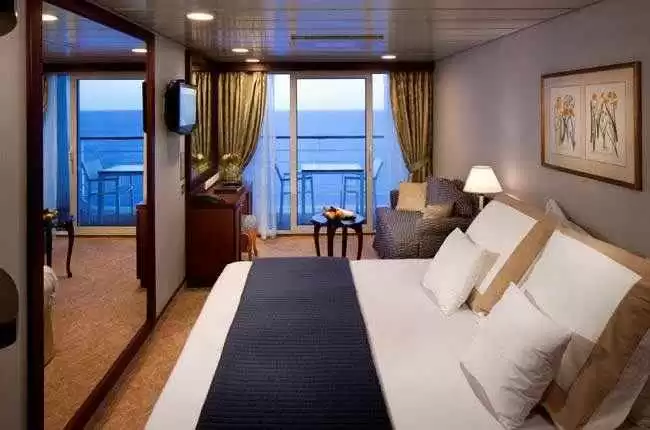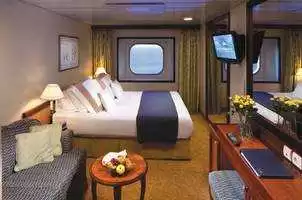 Avantages cabine : Événement AzAmazing Evenings® (sur la plupart des croisières), Pourboires inclus, Linge de lit en coton avec couette, Peignoirs et chaussons, Sélection de spiritueux standards, bières internationales et vins, Service en cabine 24 h/24, Eau en bouteille, sodas, cafés et thés de spécialité, Fleurs fraîches, Laverie en libre-service, Sac fourre-tout, Navette vers/depuis les communautés portuaires lorsque disponible, Prêt de parapluie, Services de conciergerie pour conseils et réservations, Service de cirage de chaussures, Petites attentions au service du soir, Bulletin d’actualités quotidien, Internet offert (120 minutes par personne ou 25 % de remise sur le forfait illimité), Un sac de blanchisserie offert par cabine tous les 7 jours, Un dîner offert dans un restaurant de spécialités pour deux personnes tous les 7 jours, Embarquement et débarquement prioritaires, Spiritueux offerts en cabine.