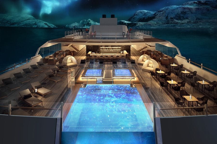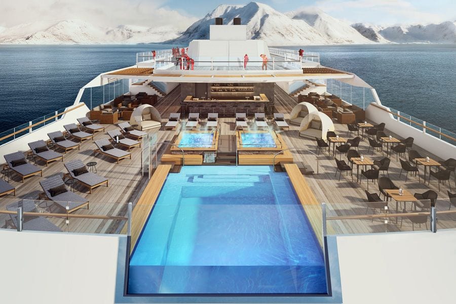 D’une capacité d’accueil d’environ 530 passagers ce navire disposera exclusivement de cabines avec  vue sur l’océan dont la moitié d’entre elles bénéficieront d’un balcon. Quant aux suites, situées à l’arrière du navire elles disposeront chacun d’un jacuzzi privatif pour allier le luxe à la découverte de terres sauvages.