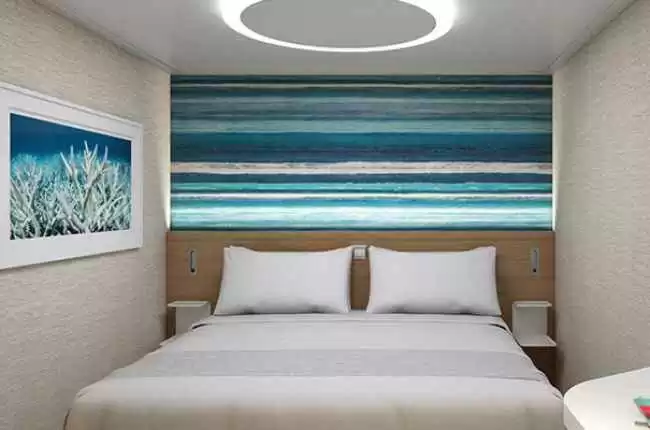 Cabine Extérieure avec Patio équipée deux lits individuels (convertibles en un grand lit), TV, téléphone, air conditionné, salle de bain avec douche. Accès exclusif à la zone de piscine et bar la Habana. *Tous les passagers de cette catégorie doivent avoir au moins 12 ans.