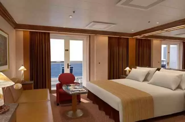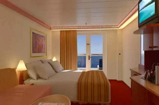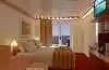 Cabine avec Balcon : sont équipées de 2 lits bas convertibles en un lit queen size ; d'un sofa, d'un bureau, d'une Tv, d'un téléphone, d'une salle de bain/wc avec sèche-cheveux, d'un balcon privé, d'une climatisation individuelle, de nombreux rangement et miroirs.