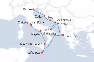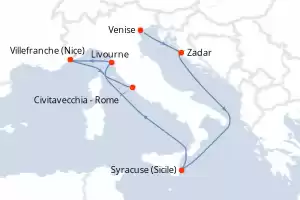 Kaseiki (pont 4) : bar à sushis et teppanyaki grill, Atlantide (pont 4) : restaurant de poissons et fruits de mer, Dame Relais et Châteaux (pont 4) : gastronomie et carte de grands vins, Silver Note (pont 7) : club de jazz et tapas bar' Terrazza (pont 7) : tradition culinaire italienne avec comptoirs interactifs, Indochine (pont 4) : cuisine asiatique créative, Hot Rocks (pont 7) : grillades et cuisine sur pierre de lave, Scappanapoli (pont 8) : cuisine italienne et pizza
