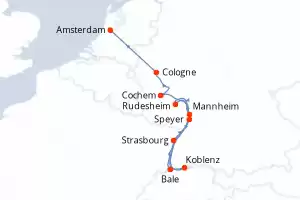 Les ponts Mozart et Straus accueillent eux aussi des cabines de 15 m2 pour 2 personnes. C'est aussi sur le pont Mozart qu'on trouve les suites Amadeus d'une capacité pour 2 personnes et d'une superficie de 30 m2. Les passagers profiteront des mêmes équipements que ceux cités précédemment, en plus d'un coin salon et d'un minibar.