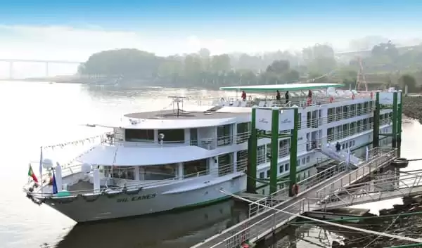 Au pont intermédiaire, un spacieux salon-bar vous accueille pour vos instants de repos après une journée d'excursions. Muni de fauteuils et de canapés confortables aux tonalités turquoise et beige foncée, ce salon est le lieu idéal pour siroter votre boisson préférée et admirer les paysages depuis les larges baies vitrées. Ce navire de croisière fluviale possède également une bibliothèque et une boutique d'objets souvenirs.