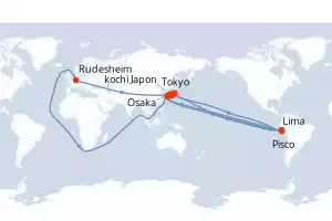 Croisière « Grandes Destinations » en Patagonie et Terre de Feu à travers le Chili, Malouines, Uruguay, Argentine. Voyage de 19 jours au départ de Paris, incluant l’avion, la pension complète, les excursions en français, des conférences de spécialistes de la région. Pour prolonger le séjour il est possible de prendre en supplément des extensions au voyage (désert d’Atacama et Île de Pâques). La croisière s’effectue à bord du Coral Princess de la compagnie Princess Cruises, un bateau luxueux et raffiné. Il possède de nombreux divertissements comme, le casino, spa, fitness, solarium, piscine, théâtre, mini-golf… Le logement se fait dans des cabines intérieures, extérieures ou avec balcon pour profiter au maximum de la vue sur la mer.
