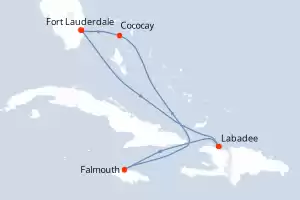 Il se distingue notamment par ses infrastructures hors du commun pour un bateaux de croisière : des tyroliennes, une patinoire et même un jardin géant. Vous partirez pour des croisières idylliques à travers la mer des Caraïbes et de l'Atlantique, et profiterez des plages paradisiaques lors de nombreuses escales, à Haïti, aux Bahamas ou encore au Mexique.
