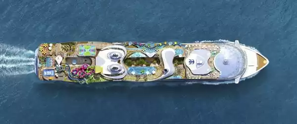 Ce navire haut de 20 ponts peut accueillir 2350 membres d’équipage et 7600 voyageurs. Long de 365 mètres, il compte 2633 cabines et 8 quartiers thématiques. En plus de 3 lieux emblématiques (la Royal Promenade, Central Park et le Quartier des Suites), la compagnie vous propose de découvrir 5 nouveaux quartiers : Thrill Island, Surfside, Chill Island, AquaDome et The Hideaway.