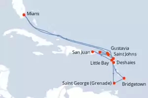 Vous profitez également d’une salle de sport ultra moderne et de 4 piscines (dont une piscine couverte) avec terrasses, bars, transats et cabanas. Le navire compte aussi : une école de cuisine, une galerie d’art, un casino et un espace shopping.