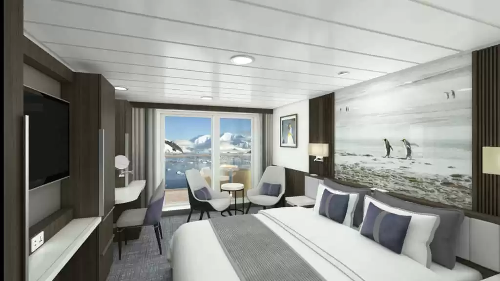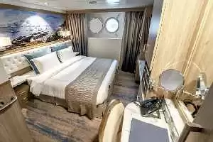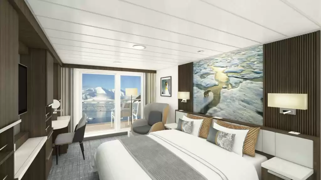 Vous séjournez dans l’une des 71 cabines ou suites que compte le navire. Avec une superficie comprise entre 19,5 m2 et 43,8 m2, les chambres de ce bateau sont spacieuses et accueillantes. Toutes offrent une vue imprenable sur l’océan grâce à un hublot, une grande fenêtre ou un balcon.