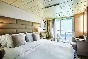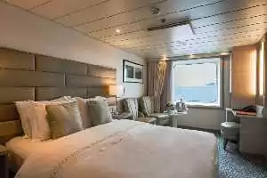 Toutes les chambres de ce navire sont pensées pour garantir un confort maximum. Elles disposent d’un coin salon et bureau, d’une penderie et d’une salle de bain en marbre avec peignoirs et chaussons de bain.