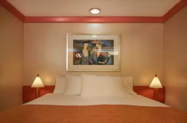 Cabine simple pourvue d'un lit double ou de 2 lits simples (sur demande). Dispose d'une salle de bain avec douche, d'un sèche-cheveux, d'une télévision interactive, d'un coffre-fort et de la climatisation (thermostat réglable). Connexion internet Wi-Fi disponible en supplément. Les cabines de cette catégorie sont localisées au pont 1 et aux ponts 6 et 9. La taille, l'agencement et le mobilier peuvent varier et différer de l'illustration (au sein de la même catégorie de cabine). La photo ci-contre n'est pas contractuelle.