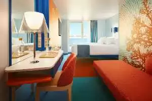 Cabine pourvue d'un lit double ou de 2 lits simples (sur demande). Dispose d'une salle de bain avec douche, d'un sèche-cheveux, d'une télévision interactive, d'un coffre-fort et de la climatisation (thermostat réglable). Connexion internet Wi-Fi disponible en supplément. Surface de 10 ê 14 m². Les cabines de cette catégorie sont localisées aux ponts 4 et 5 et du pont 9 au 17. La taille, l'agencement et le mobilier peuvent varier et différer de l'illustration (au sein de la même catégorie de cabine). La photo ci-contre n'est pas contractuelle.