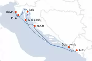 Embarquer pour une croisière sur l’Adriatique, c’est vivre une odyssée à la découverte d’une mosaïque fascinante de cultures et de panoramas. Explorez Dubrovnik, connue comme la « perle de l'Adriatique » et laissez-vous emporter par le charme éternel de Venise. Baignez-vous dans les eaux limpides des îles dalmates et arpentez la fascinante Kotor au Monténégro. Découvrez une gastronomie méditerranéenne gourmande, plongez dans les récits anciens des cités maritimes et savourez les vins régionaux.