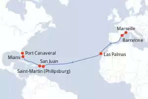 Royal Caribbean propose des traversées de l’Atlantique à bord de navires ultra modernes. Un voyage au départ de Miami en Floride avec ensuite plusieurs escales et excursions en Méditerranée.
