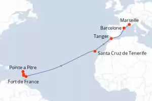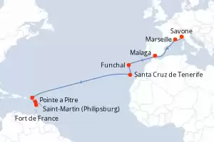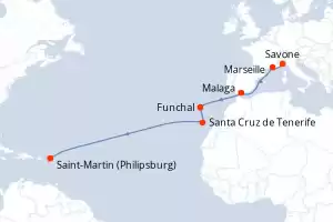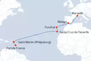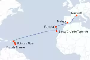 Vivez une expérience exceptionnelle en embarquant pour une croisière transatlantique entre l'Ancien et le Nouveau Monde. Au départ de villes emblématiques telles que Marseille, Barcelone, Rome ou Miami, ces traversées de 9 à 15 jours vous entrainent dans un voyage passionnant, ponctué d'histoires et de découvertes. Les croisières transatlantiques comprennent souvent diverses escales, permettant d'explorer des cités fascinantes, de découvrir plusieurs cultures et de goûter à des mets internationaux. Laissez-vous séduire par le balancement des flots et les panoramas infinis et vivez pleinement la magie de la traversée transatlantique.