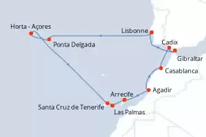 Parsemé d'îles répondant aux doux noms de Canaries, Madère, Cap Vert ou Bahamas, l'océan Atlantique peut évoquer des vacances de rêve sur des plages de sable fin bercées par de doux alizés. A l'inverse, il suffit de désigner le cap Horn, le cap de Bonne Espérance ou le détroit de Magellan pour se représenter l'aventure des grands espaces et la beauté sauvage d'une nature préservée. L'Atlantique, ce sont aussi de lointaines destinations vers les zones australes près des cercles polaires, où l'on peut admirer des aurores boréales ou voyager sous le soleil de minuit. De la prestigieuse transatlantique proposée par Costa Croisières au départ de Marseille et achevant sa course sur les côtes antillaises, à la traversée reliant Southampton à Vigo en passant par Lisbonne à bord du Navigator of the Seas de la Royal Caribbean, une croisière sur l'Atlantique constitue une expérience inoubliable.