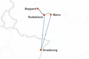 Votre croisière haut de gamme pourra vous mener à Rudesheim et sa célèbre rue pavée de Drosselgasse, où se trouvent de nombreux bars et de restaurants où l'on peut déjeuner au son de la musique traditionnelle. Vous pourrez également visiter la ville de Mayence, qui vous plongera dans une atmosphère cosmopolite entourée par les cathédrales et les musées dont celui de Gutenberg, qui figure comme le Musée Mondial de l?Imprimerie. Coblence située à la confluence du Rhin et de la Moselle, pourra faire partie des autres escales de votre croisière. Cette ville, que l'on nomme aussi le "Coin Allemand" érige en son centre une statue équestre de l?empereur Guillaume Ier et renferme la splendeur de la citadelle d'Ehrenbreitstein qui, du haut de ces 120 mètres offre une vue panoramique.