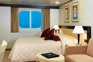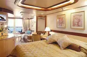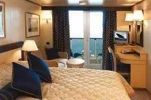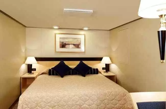 Avantages cabine : Du vin pétillant comme cadeau de bienvenue, service de chambre 24h/24, embarquement et débarquement prioritaires, service de nuit, du thé et du café offerts, accès à la laverie libre-service et dîner en suite à partir du menu du Britannia Club