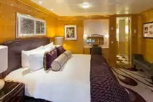 À noter que pour un souci d’intimité, presque toutes les cabines sont équipées de deux salles de bains comprenant douche et baignoire et des toilettes séparés, afin que les enfants possèdent leur propre salle de bain. À la pointe de la technologie, elles ont toutes un hublot masquant un écran plat, qui retranscrit les images de la mer filmées en direct de l’extérieur, mais également un coffre-fort, un écran plat et la climatisation à réglage individuel. Sont aussi à disposition des espaces de rangement, un petit réfrigérateur, un téléphone et un sèche-cheveux.