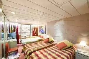 Les cabines sont équipées, d’un lit double convertible en deux lits simples, d’une salle de bain avec douche, d’une coiffeuse avec sèche-cheveux, d’une TV interactive, d’un téléphone, d’un coffre-fort, d’un minibar. Connexion Wifi disponible (avec supplément) et d'une climatisation.