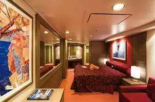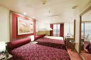 Équipements : cabine avec un balcon dotée d’un lit double convertible en deux lits simples, d'une penderie, d'un séjour avec canapé, d’une salle de bain avec douche, d'une coiffeuse avec sèche-cheveux, d’une TV interactive, d’un téléphone, d’un coffre-fort, d’un minibar, d'une connexion Wifi disponible (avec supplément) et d'une climatisation.