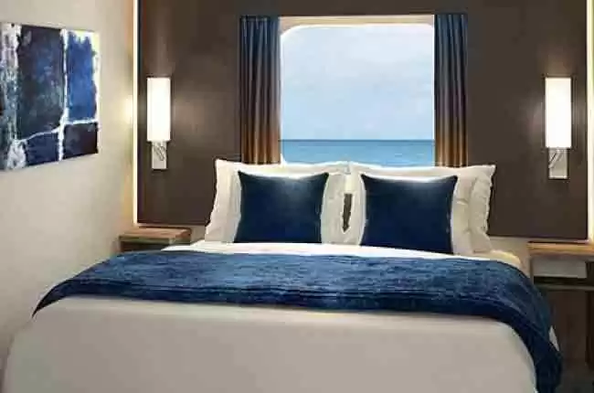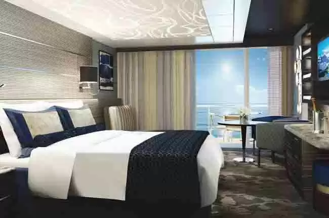 Avantages de la cabine : Service de majordome, service de conciergerie, enregistrement prioritaire, débarquement prioritaire, embarquement prioritaire, repas dans la cabine, fruits frais, champagne de bienvenue, salon exclusif, piscine exclusive, salon extérieur exclusif, peignoirs en coton épais, menu d'oreillers, machine à espresso et à cappuccino, menus spéciaux pour les suites, matelas à plateau-coussin de collection, friandises livrées à domicile tous les soirs, valet de chambre dans la cour, escorte jusqu'à la suite.