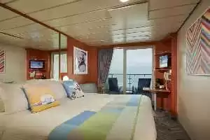 Equipement : Balcon privé, coin salon, deux lits inférieurs convertibles en un grand lit, placard, télévision, coffre-fort, réfrigérateur, salle de bain luxueuse avec douche, sèche-cheveux.
