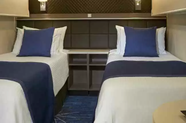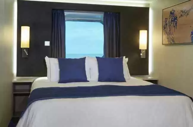 Equipement : Deux lits simples qui peuvent être combinés en un lit plus grand, lit simple dans une pièce séparée, canapé-lit double dans certains cas et/ou lit escamotable dans d'autres, articles de toilette Bvlgari, téléphone, climatisation, mini-réfrigérateur, coffre-fort, couette, sèche-cheveux, peignoir et pantoufles, lecteur CD, réveil, haut-parleur Bluetooth, télévision à écran plat, balcon virtuel, grand écran d'ordinateur qui montre l'extérieur du navire.
