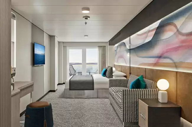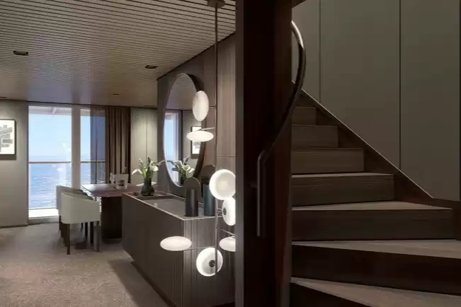 Avantages de la cabine : Majordome, concierge, enregistrement prioritaire, débarquement prioritaire, embarquement prioritaire, fruits frais, champagne de bienvenue, peignoirs en coton épais, oreillers à mémoire de forme, machine à expresso et à cappuccino, menus spéciaux pour les suites, matelas confortables, friandises livrées à domicile tous les soirs.