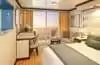 Équipements : deux lits simples convertibles en lit queen-size, balcon deluxe avec deux chaises et une table, salle de bains avec douche, télévision à écran plat, réfrigérateur, coiffeuse avec miroir, sèche-cheveux, coffre-fort numérique, bureau avec chaise, grand placard.