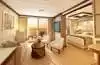 Équipements : chambre avec lit queen-size, salon séparé avec canapé-lit, salle de bains en marbre avec baignoire et douche séparées, deux téléviseurs à écran plat, réfrigérateur, coiffeuse, linge de lit de luxe, peignoirs, sèche-cheveux, machine à café, coffre-fort numérique.