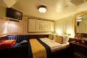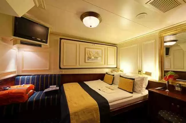 Les cabines intérieures sont équipées d'une salle de bain privée, un sèche-cheveux, un coffre-fort, une télévision, un téléphone et beaucoup d'autres installations pour vous proposer le meilleur voyage possible. La taille, l'agencement et le mobilier peuvent varier et différer de l'illustration (au sein de la même catégorie de cabine).