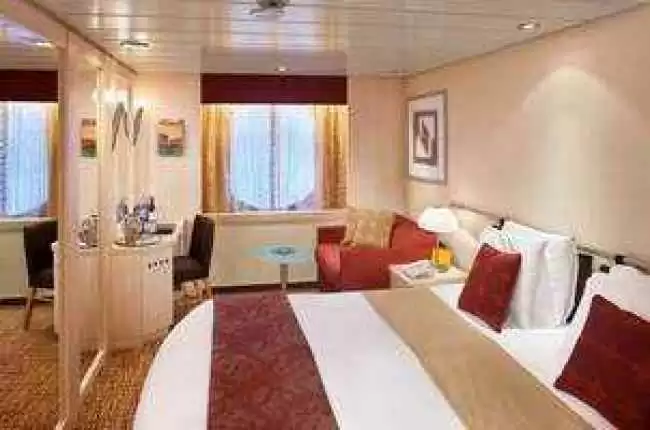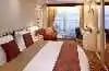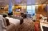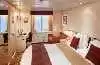 Cabine avec deux lits simples(convertible en un grand lit), télévison intéractive, téléphone, minibar, coffre-fort, salle de bain avec séche-cheveux, service de chambre 24/24h