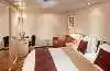 Suite avec balcon, avec deux lits simples(convertible en un grand lit), télévison intéractive, téléphone, minibar, coffre-fort, salle de bain avec séche-cheveux, service de chambre 24/24h. Suite d´environ 18m² et balcon de 3m²