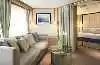 Suite balcon à la Française d environ 25 M2 . Lit Queen size . coffre . Fruits en cabine . ( Balcony suite ) . NB / Pas de place pour petite table et chaises sur le balcon.